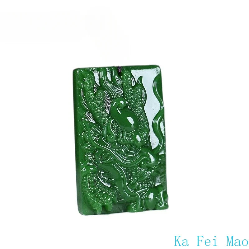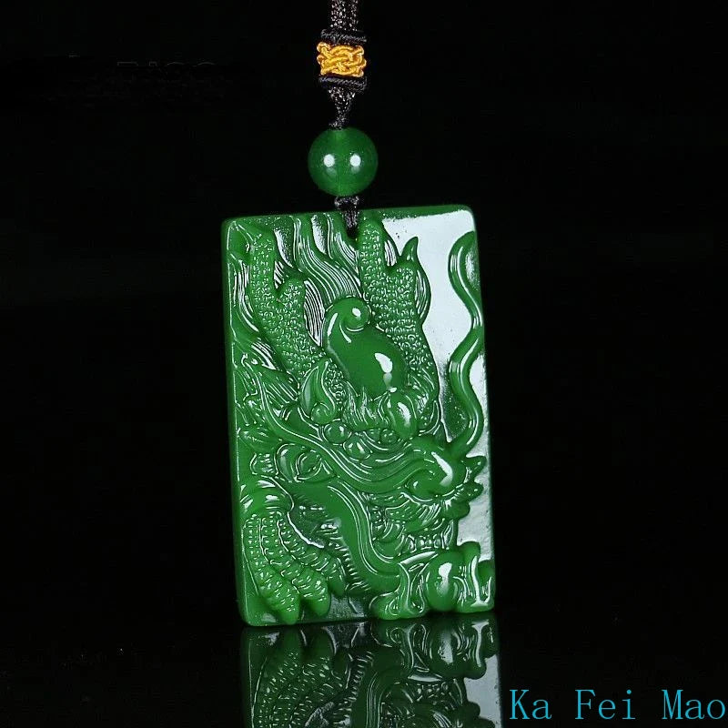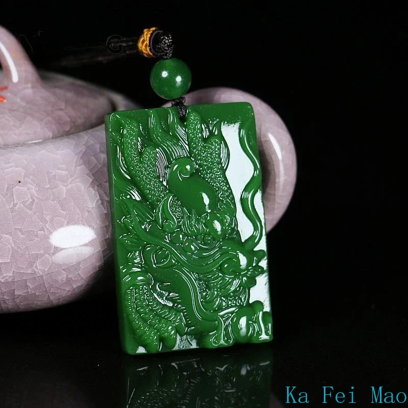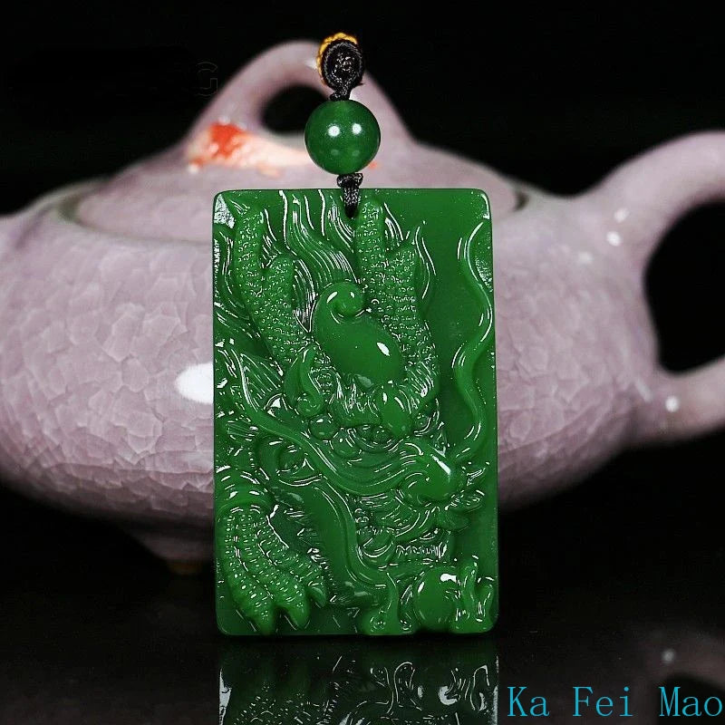 Natural Hetian Jade Dragon Pendant – Hand-Carved Jasper Zodiac Necklace for Men & Women