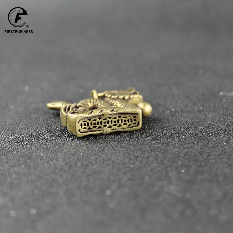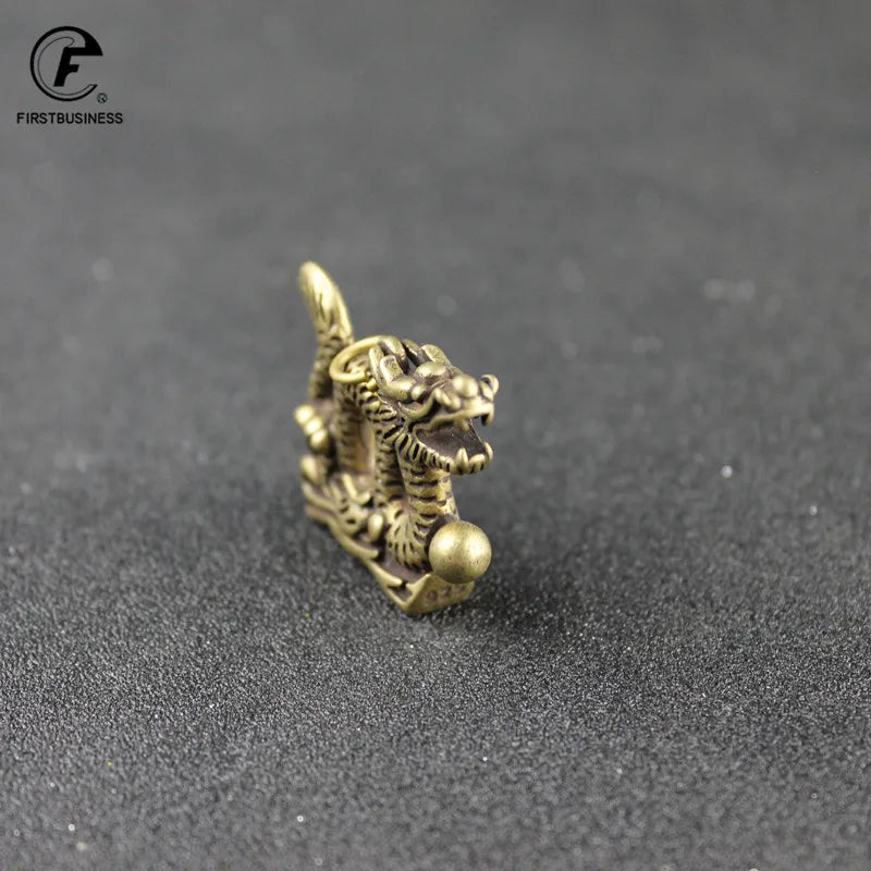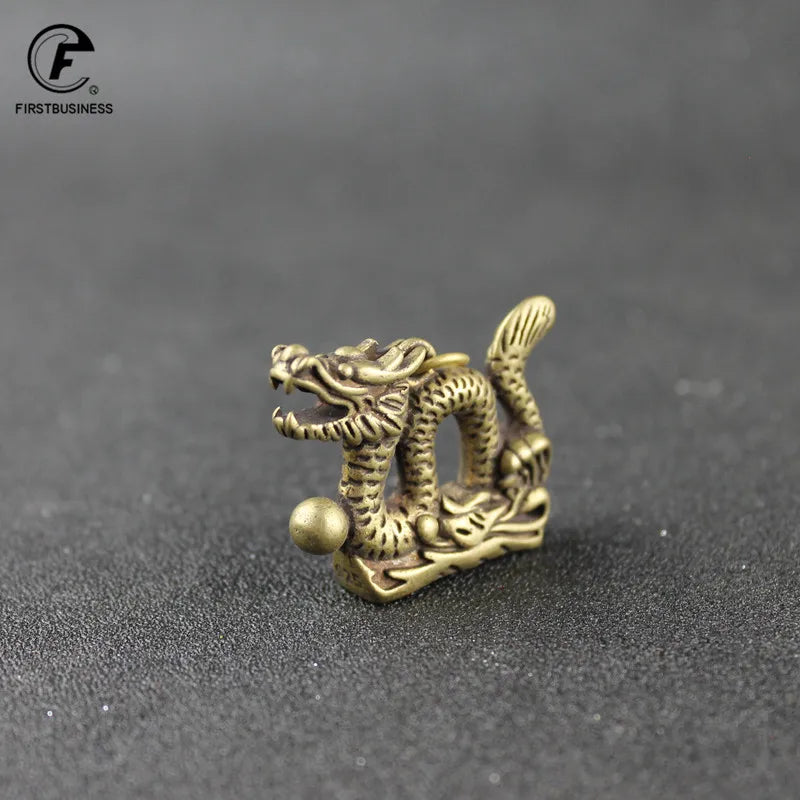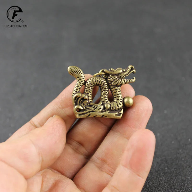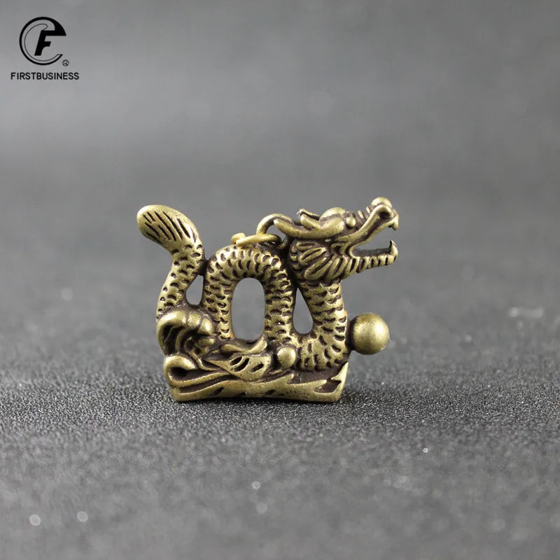 Retro Copper-Gold Dragon Totem Keychain – Brass Animal Chinese Fashion Jewelry & Mini Dragon Sculpture