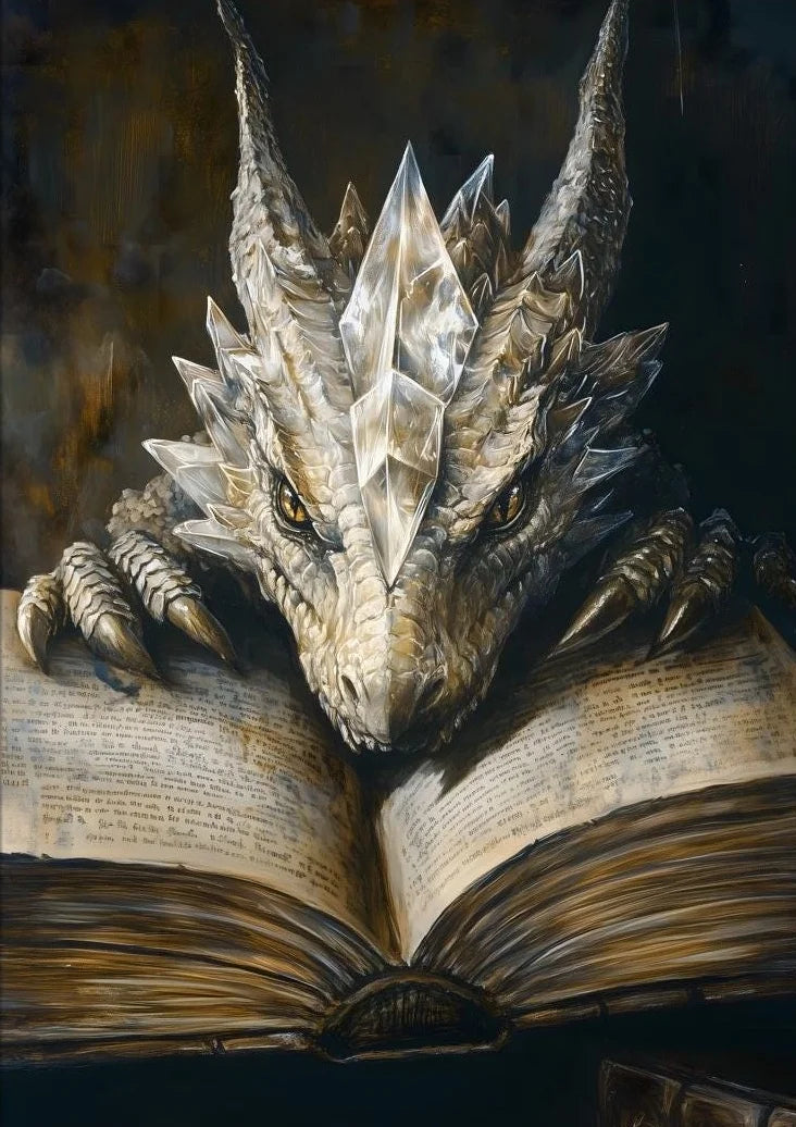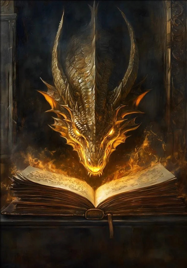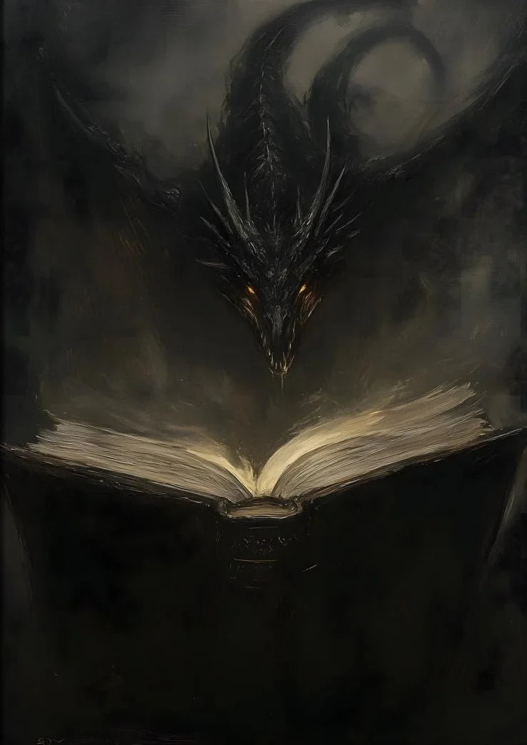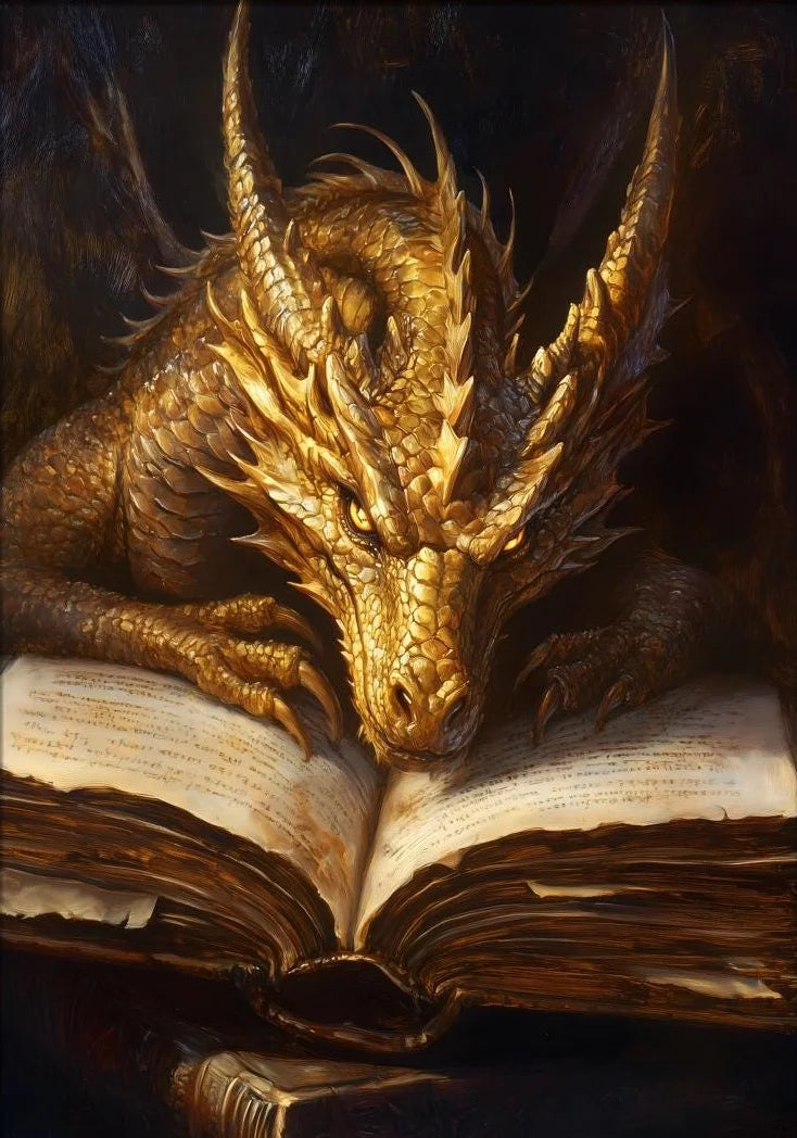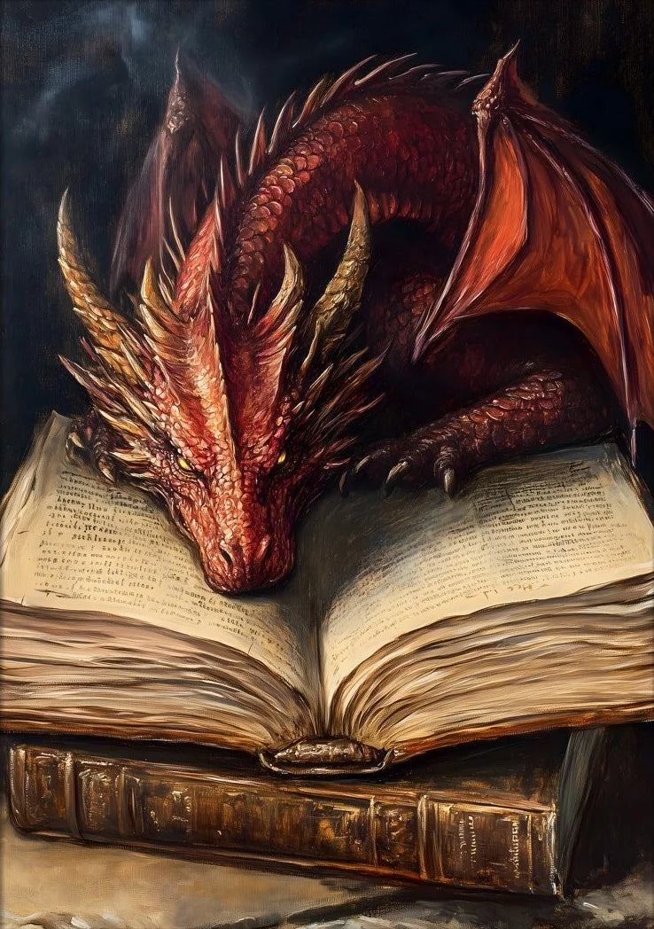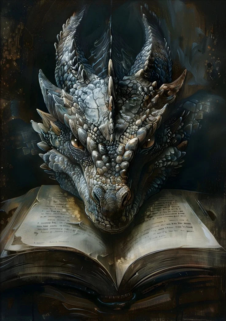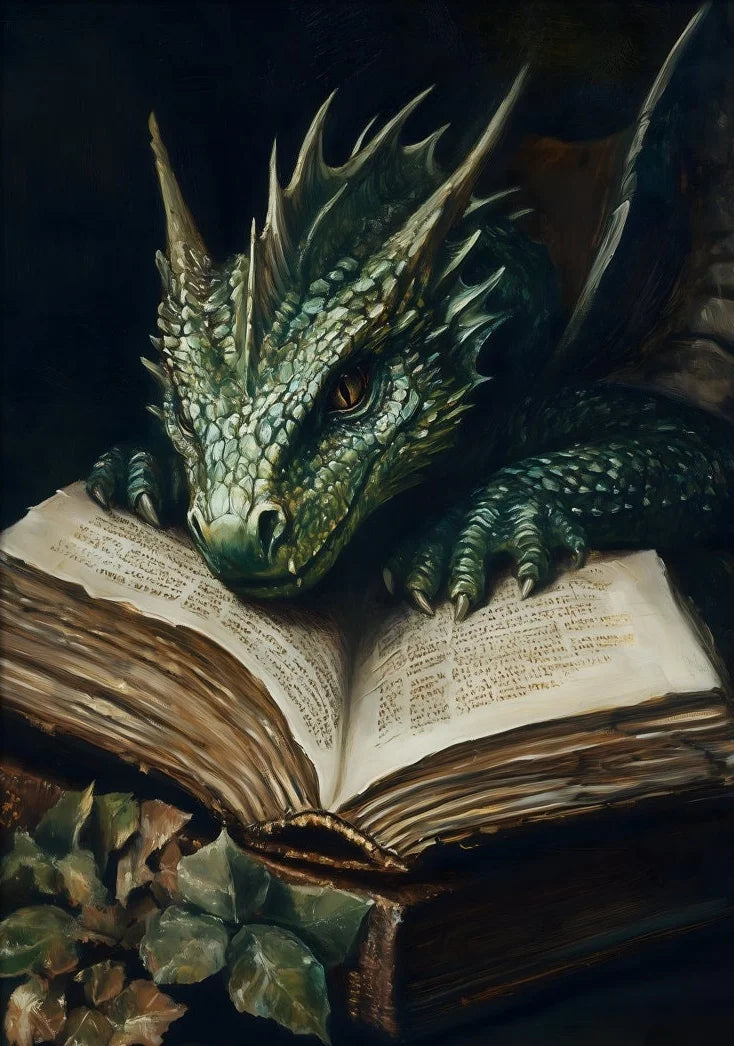 Dive into mythical intellect with this Large Dragon Reading Book Poster — a gothic-style canvas painting that perfectly blends fantasy and dark academia aesthetics, ideal for enriching your study, library, or creative space.