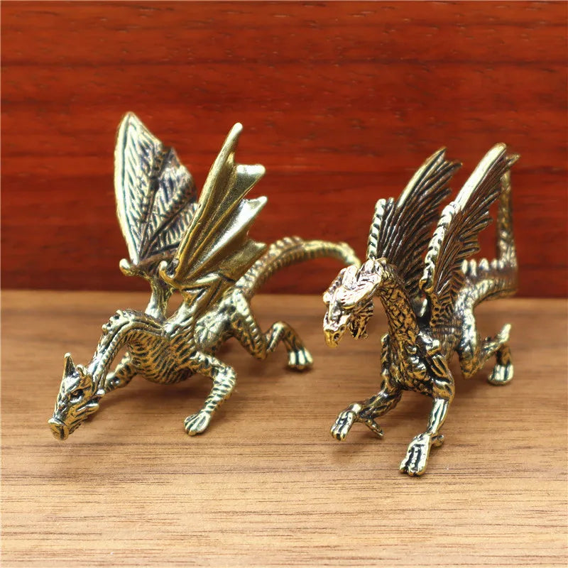 Retro Solid Brass Pterosaur Dragon Figurine – Chinese Mythical Beast Statue, Feng Shui Decoration & Desktop Ornament