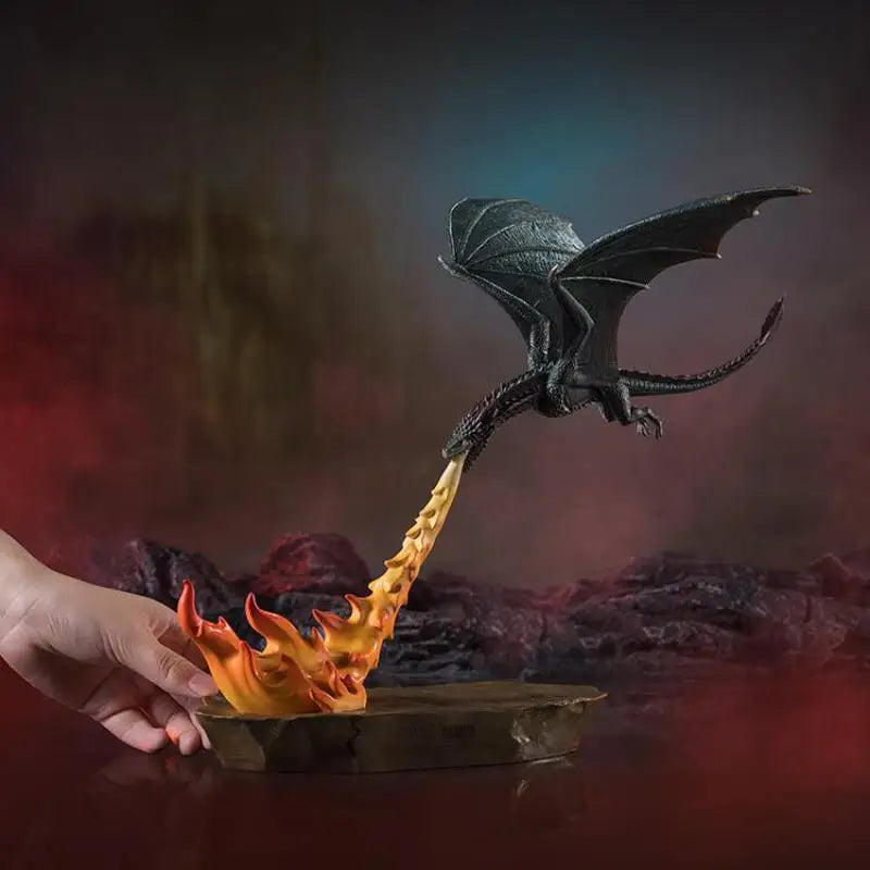 Features a dynamic flame dragon figure with lifelike textures and flowing motion