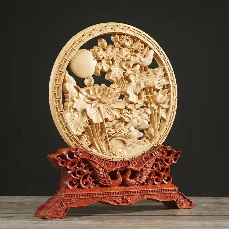 Enhance your space with this exquisite wood-carved Dragon and Phoenix round statue — a symbol of harmony and prosperity, perfect as a high-quality décor accessory for home or office.