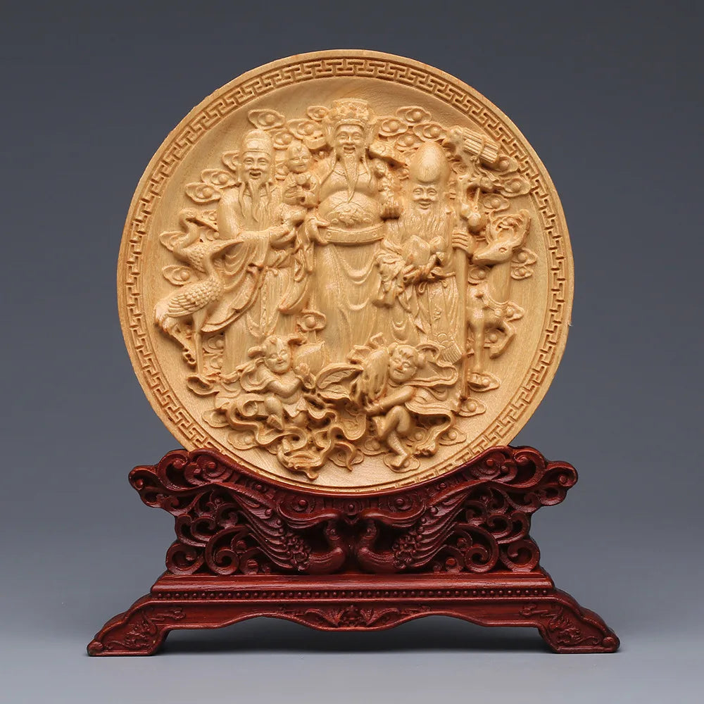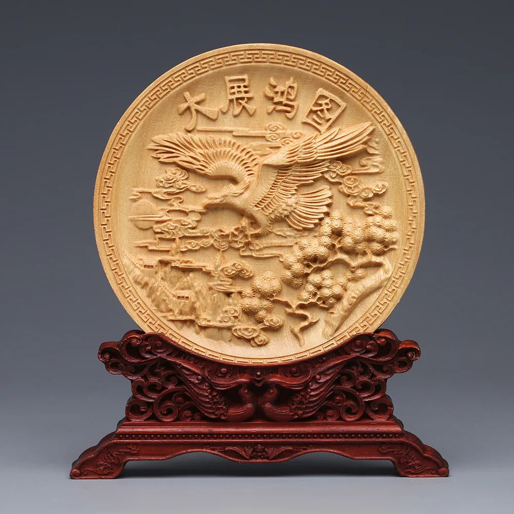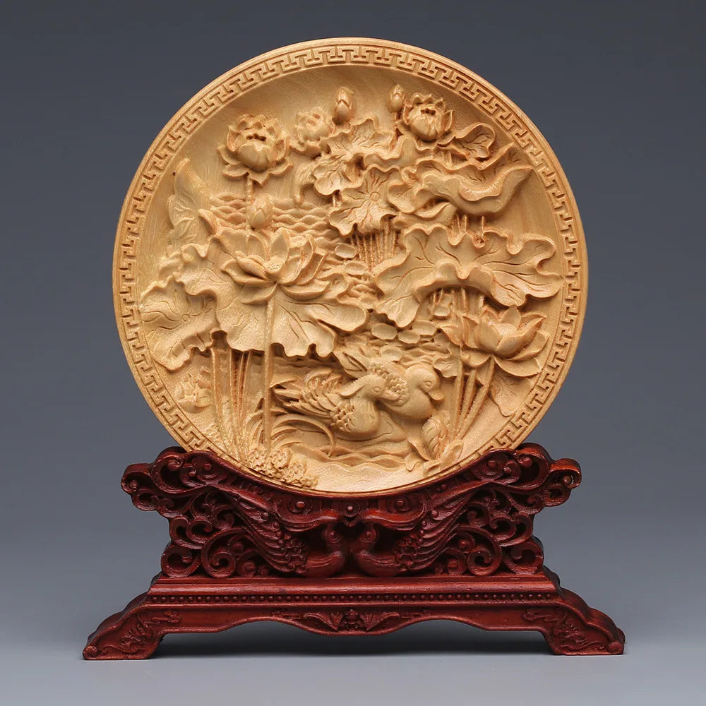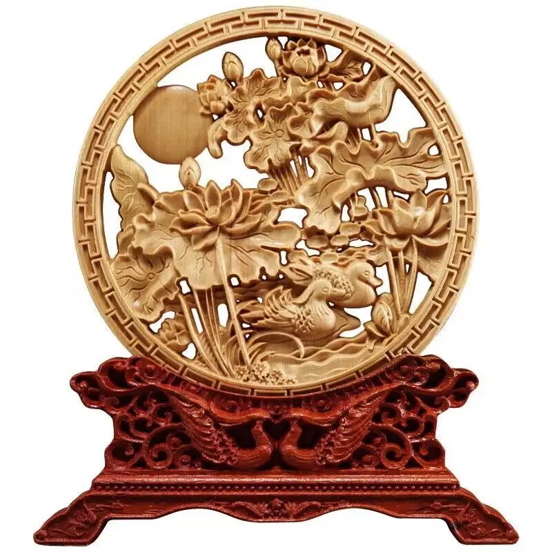 Wood Carving Dragon and Phoenix Round Art Statue – High-Quality Home & Office Decoration Mascot
