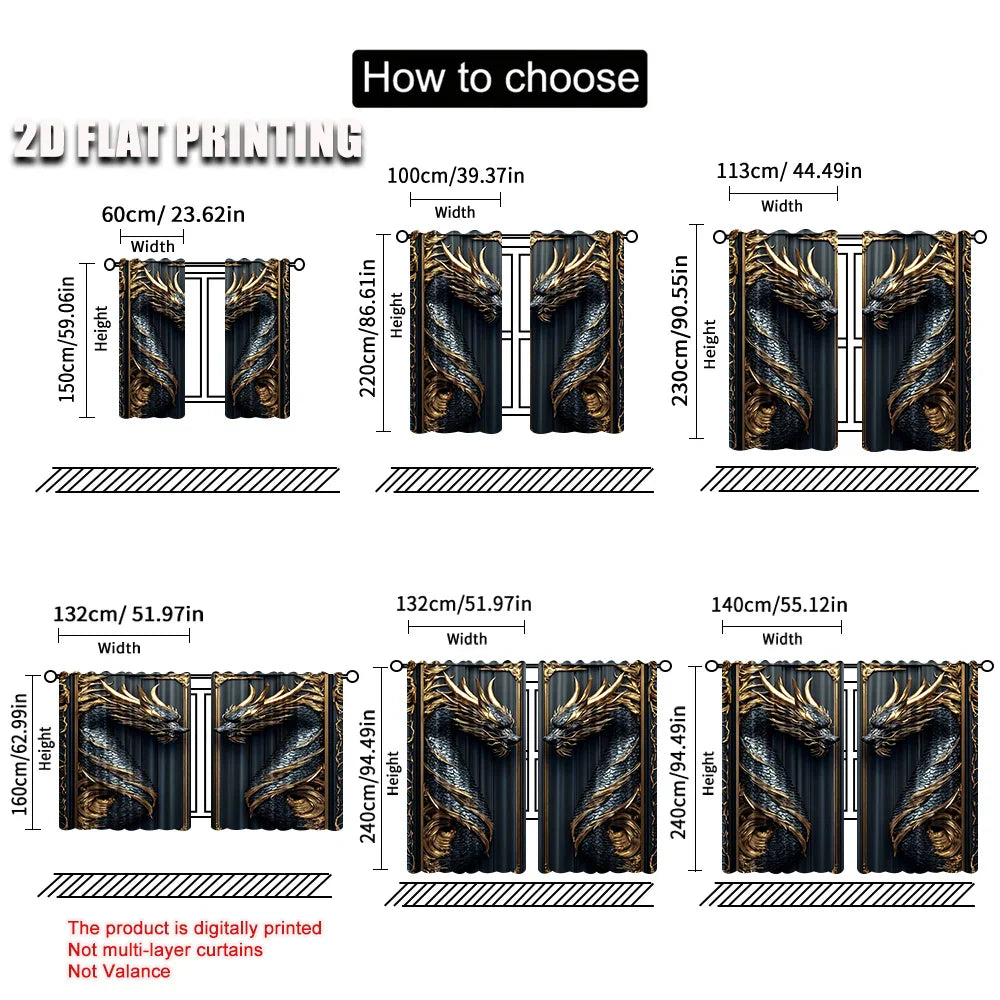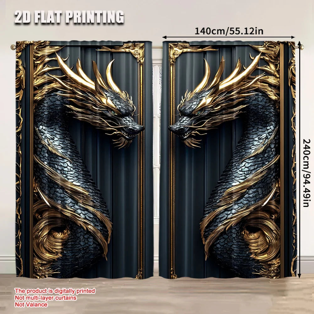 2Pcs Dragon Totem Patterned Curtains – Versatile Decor for Bedroom, Kitchen, Living Room & More