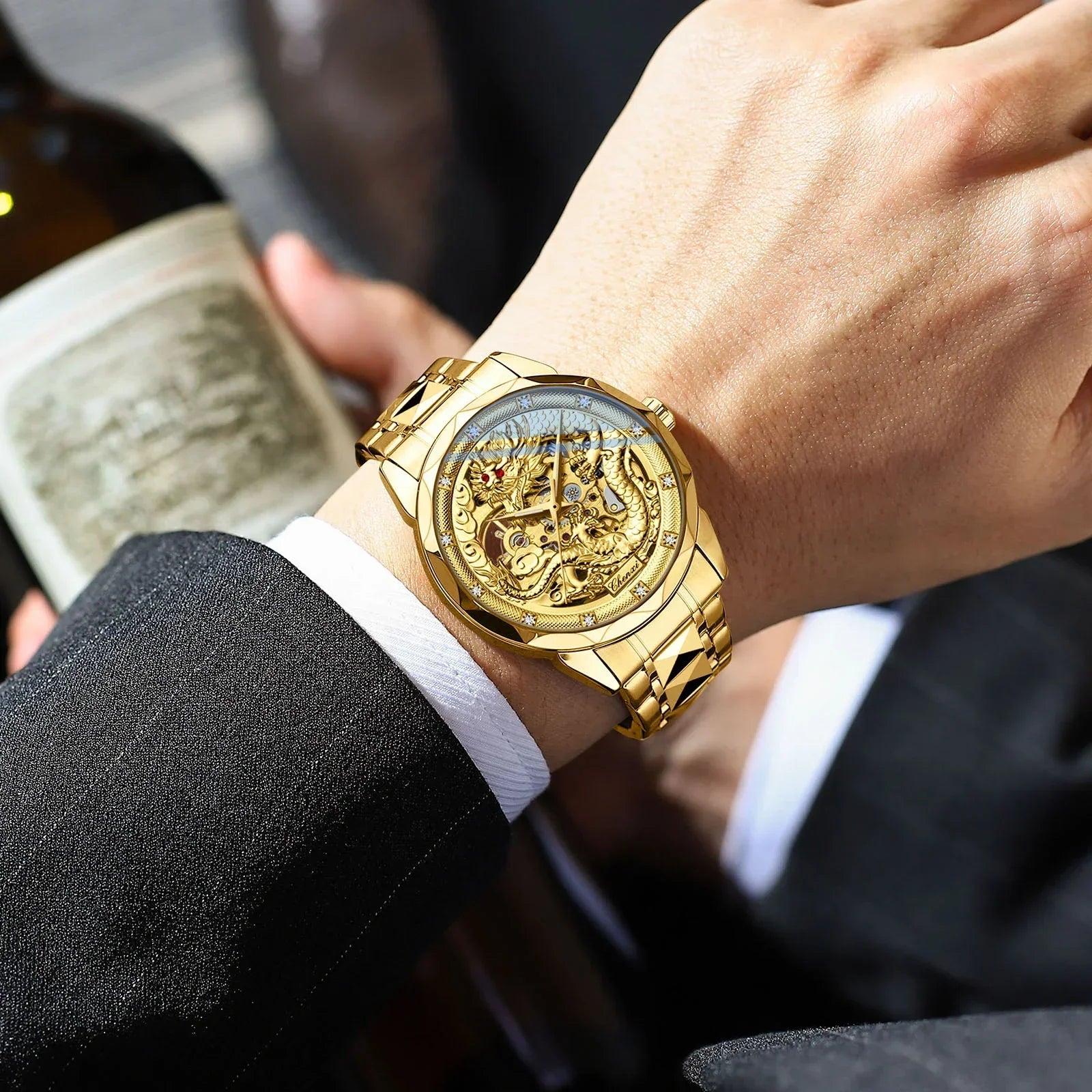 π 8899 Chinese Nation Culture & Art Watch β 3D Embossed Dragon Gold Automatic Mechanical Stainless Steel Menβs Watch βπ¨π³