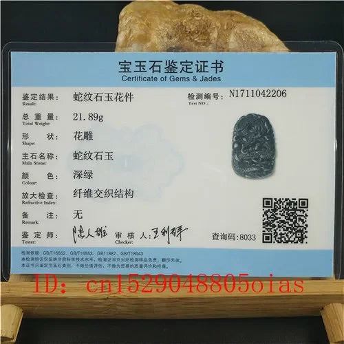 Certified Chinese Natural Black Green Jade Dragon Pendant Beads Necklace Charm Jewelry Obsidian Carved Amulet Gifts for Men
