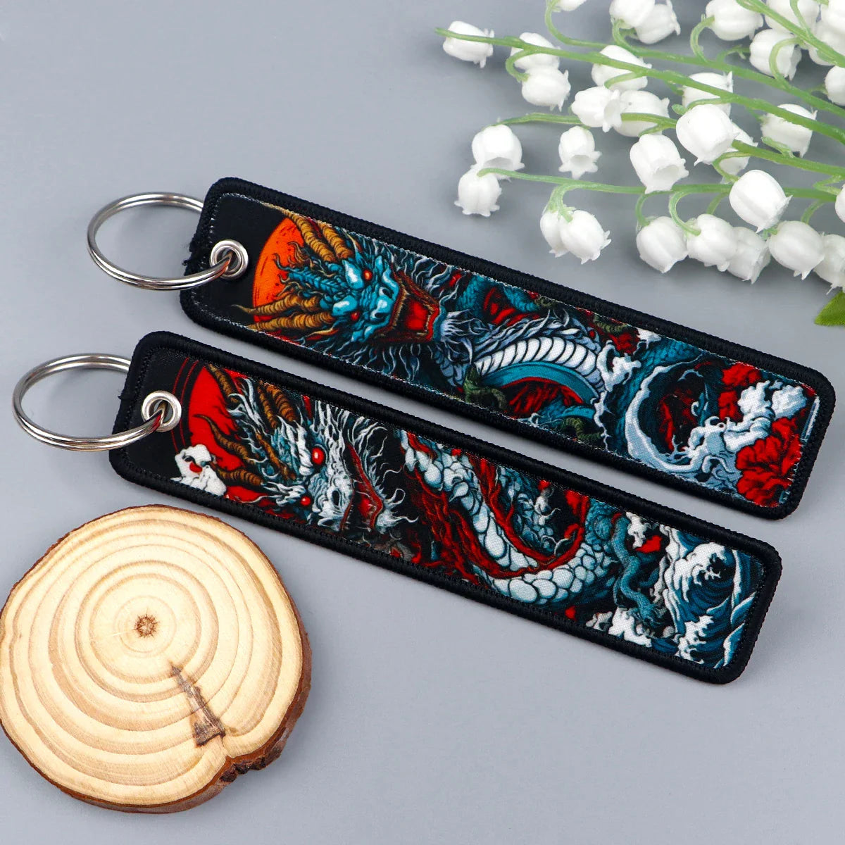π Cool Dragon Embroidery Key Fobs β Japanese Waves Design Keychain for Motorcycles & Cars ππ