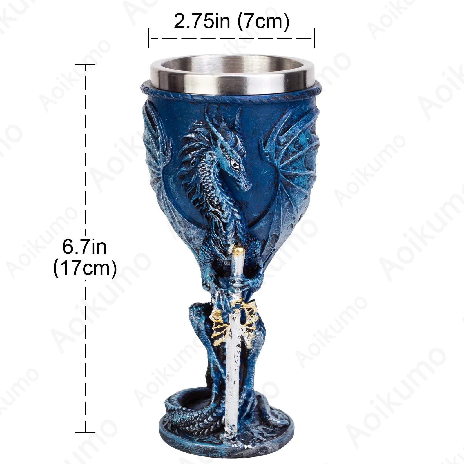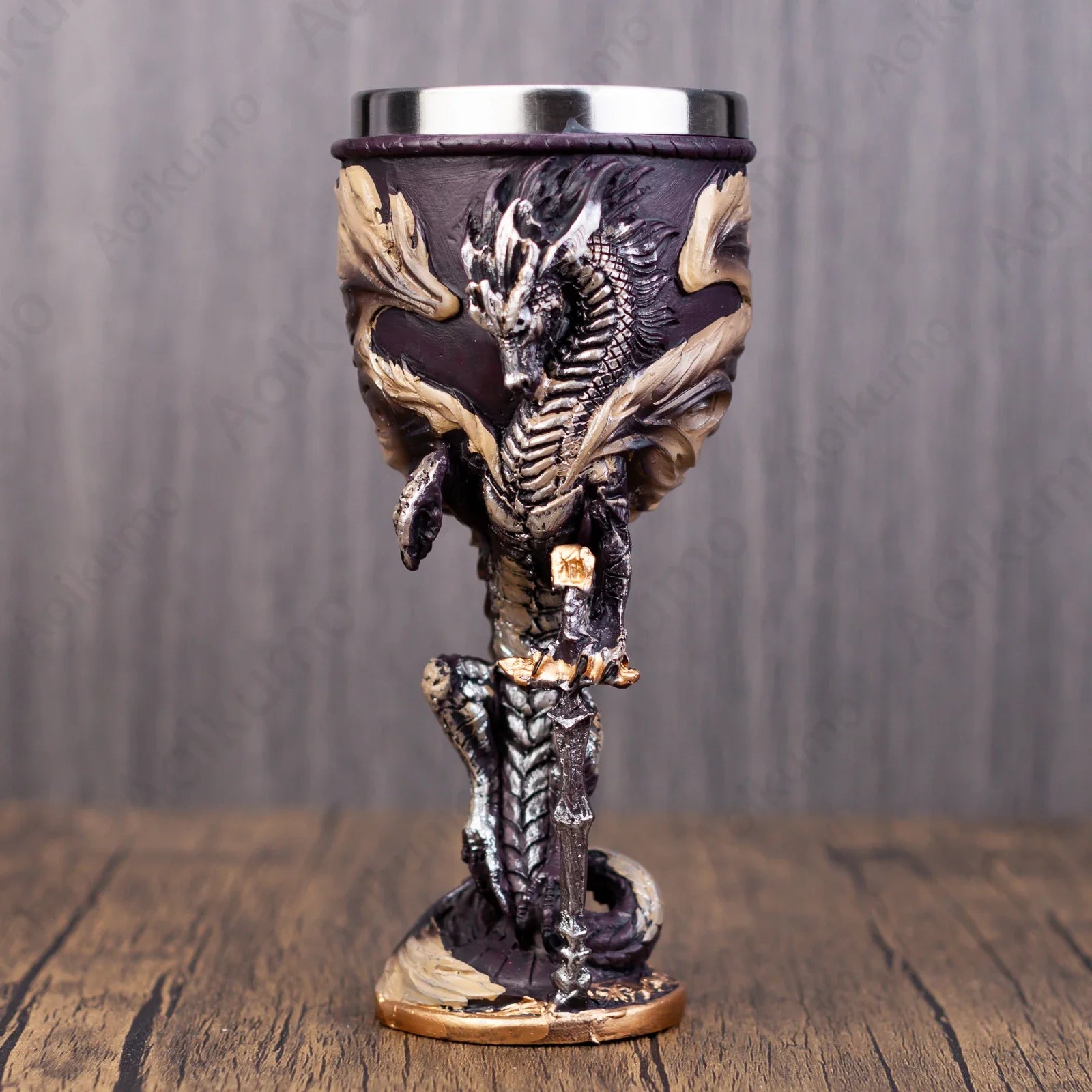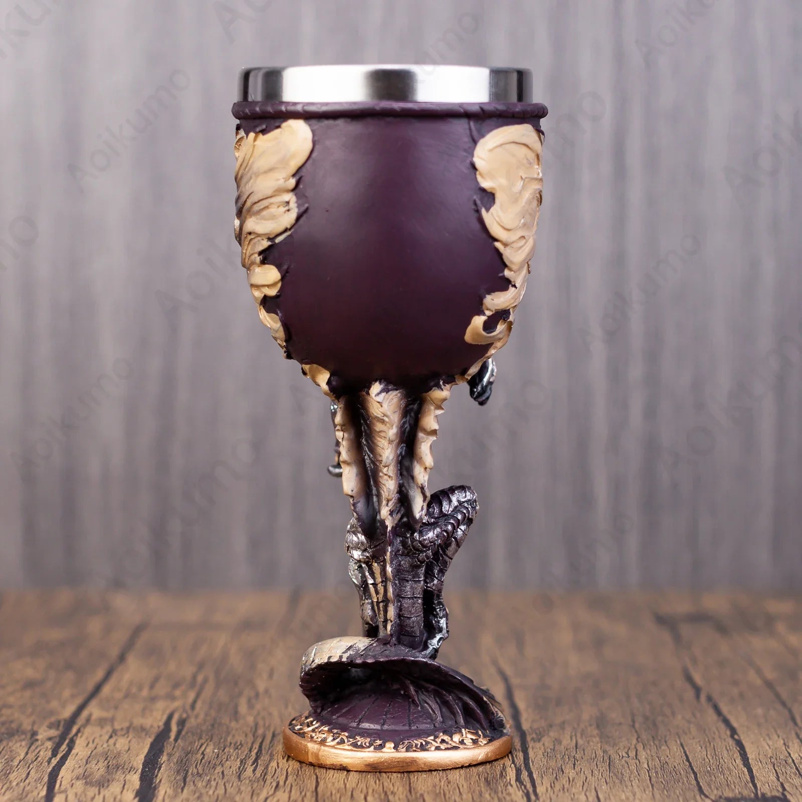 Creative Medieval Dragon Resin Goblet – Hand-Painted Wine Cup with Stainless Steel Insert