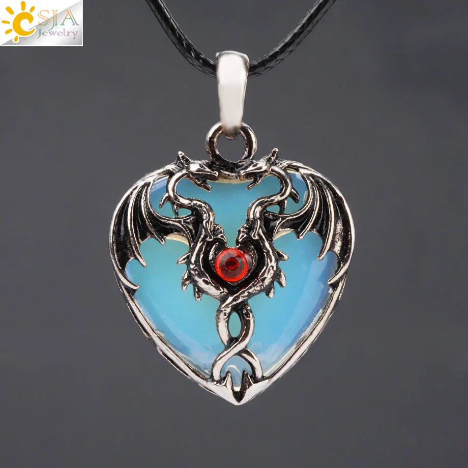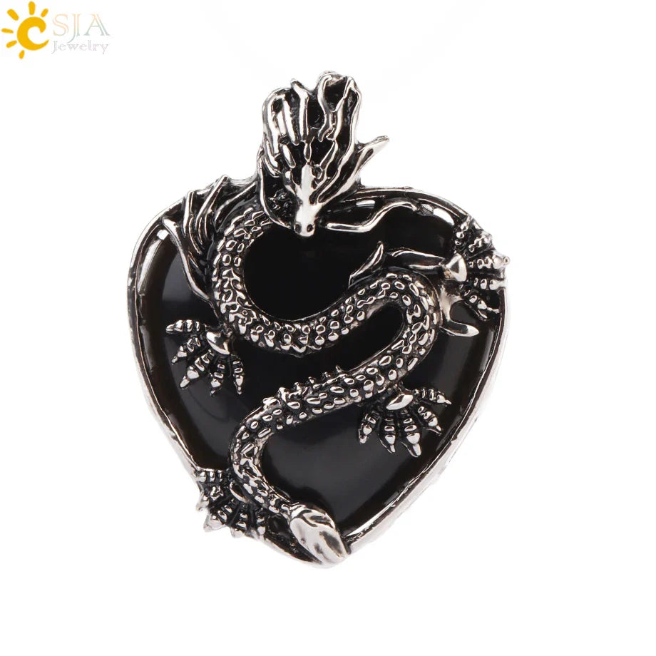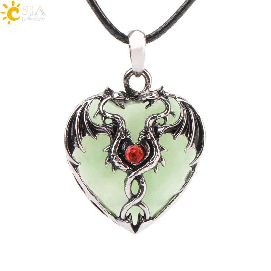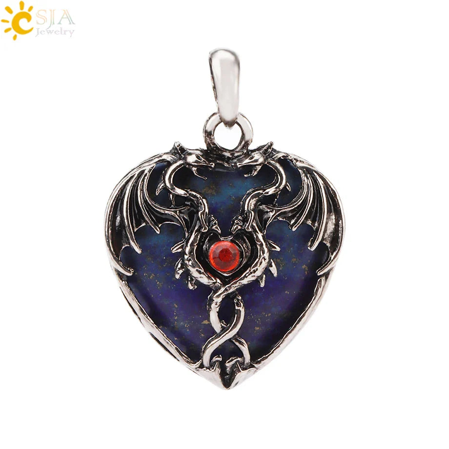 Celebrate powerful duality with the CSJA Double Dragon Necklace — featuring intertwined dragons guarding a natural stone heart crystal, a perfect amulet for Halloween or everyday mystical style.