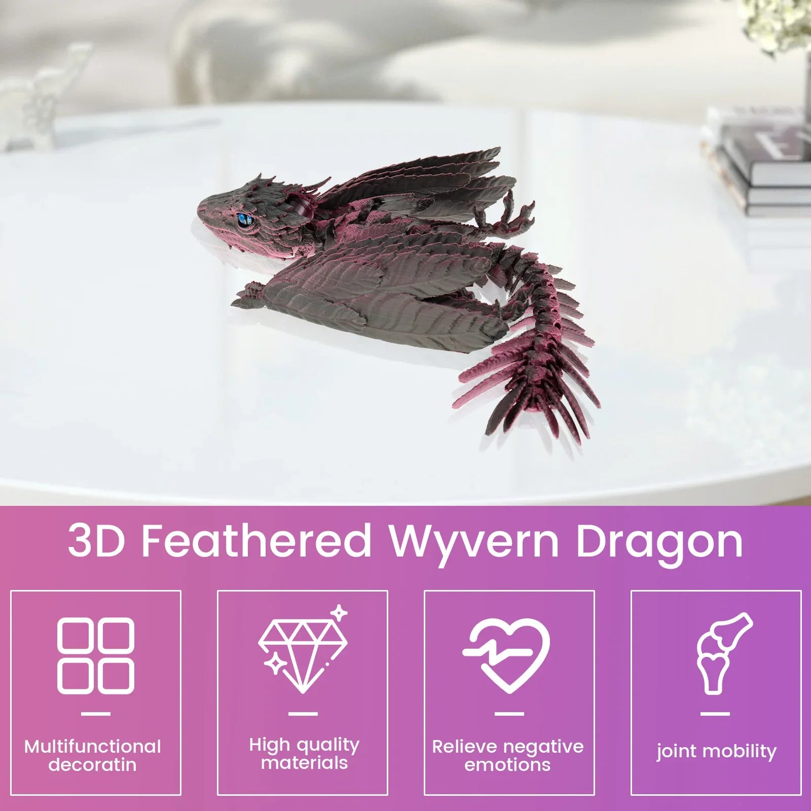 Let your desk take flight with this fantastical feathered dragon – a blend of mythical charm and modern 3D design!