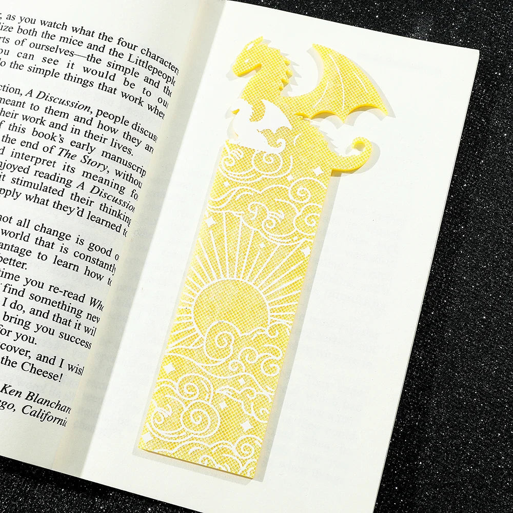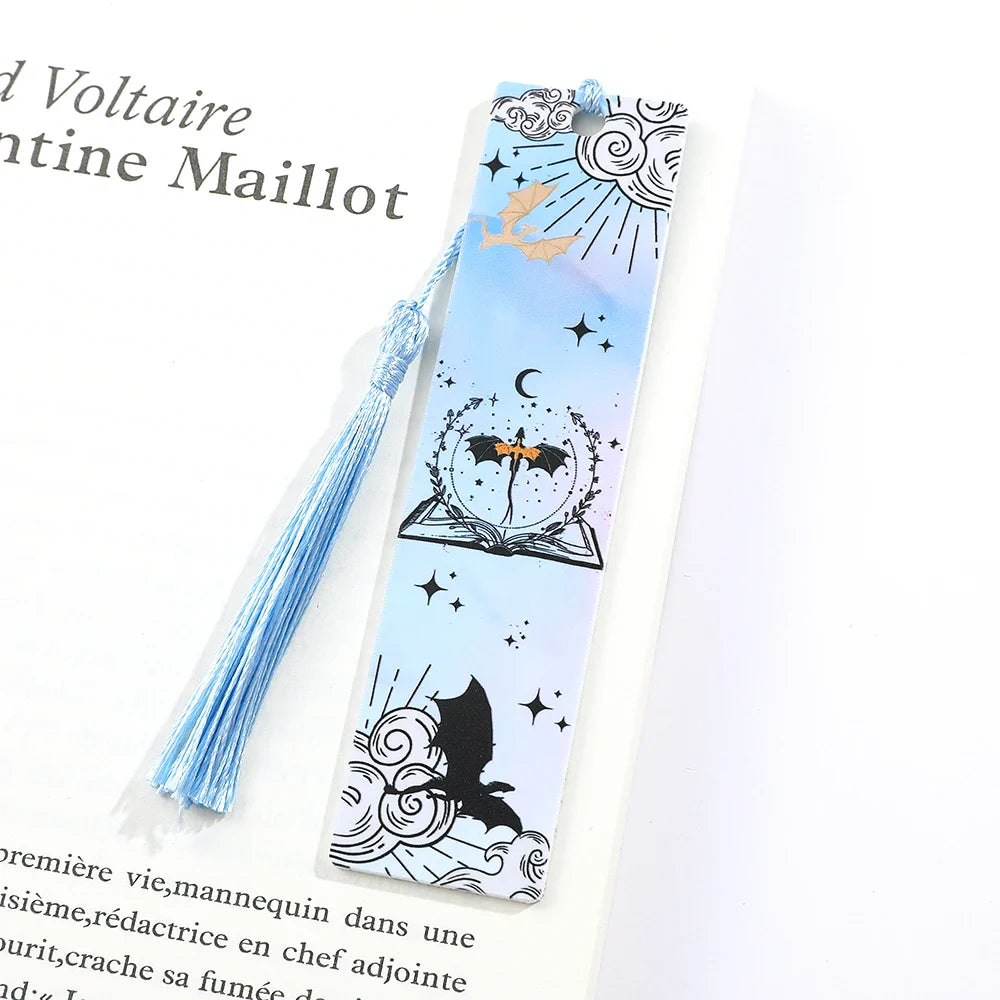 Add a touch of mysticism to your reading routine with this Gothic-style Fourth Wings Dragon Bookmark, featuring a gold and black dragon soaring through clouds and sun. A perfect gift for fantasy lovers and bookworms alike!