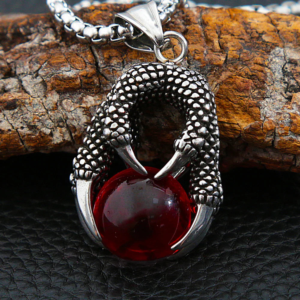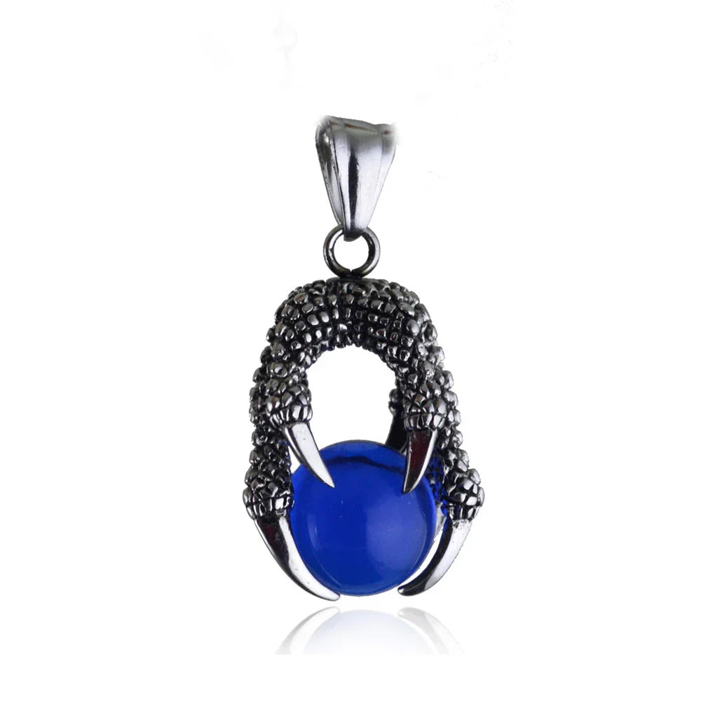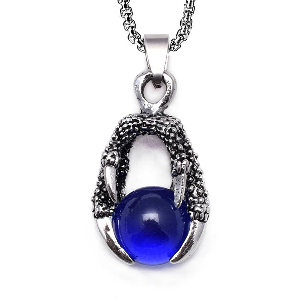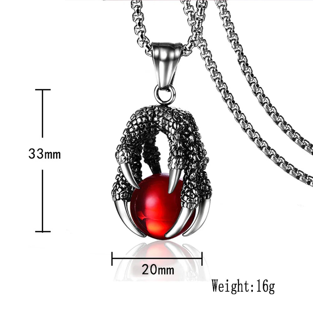 Embrace bold gothic style with this Stainless Steel Dragon Claw Pendant Necklace — featuring striking blue, white, black, and red glass beads for a powerful, retro-inspired accessory.