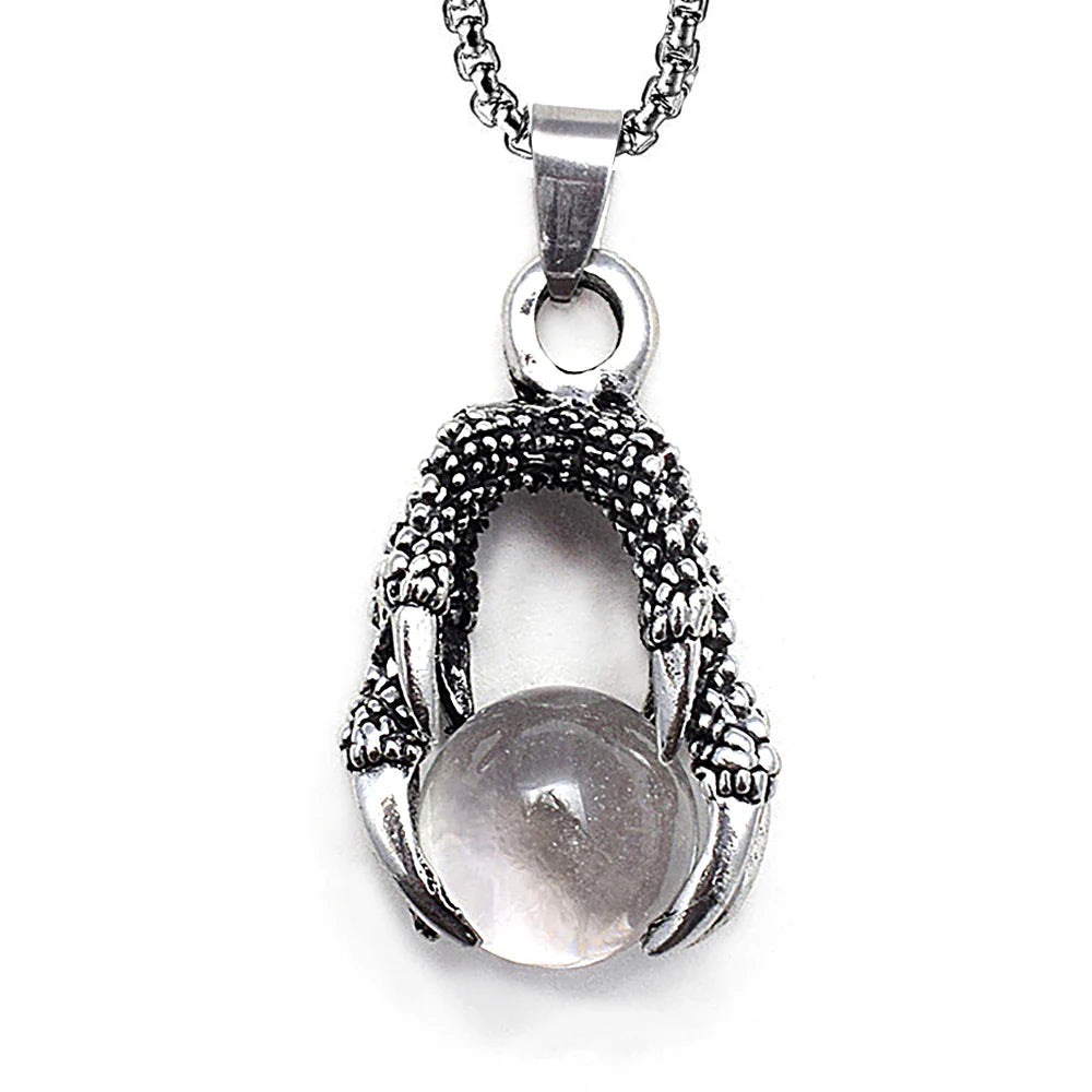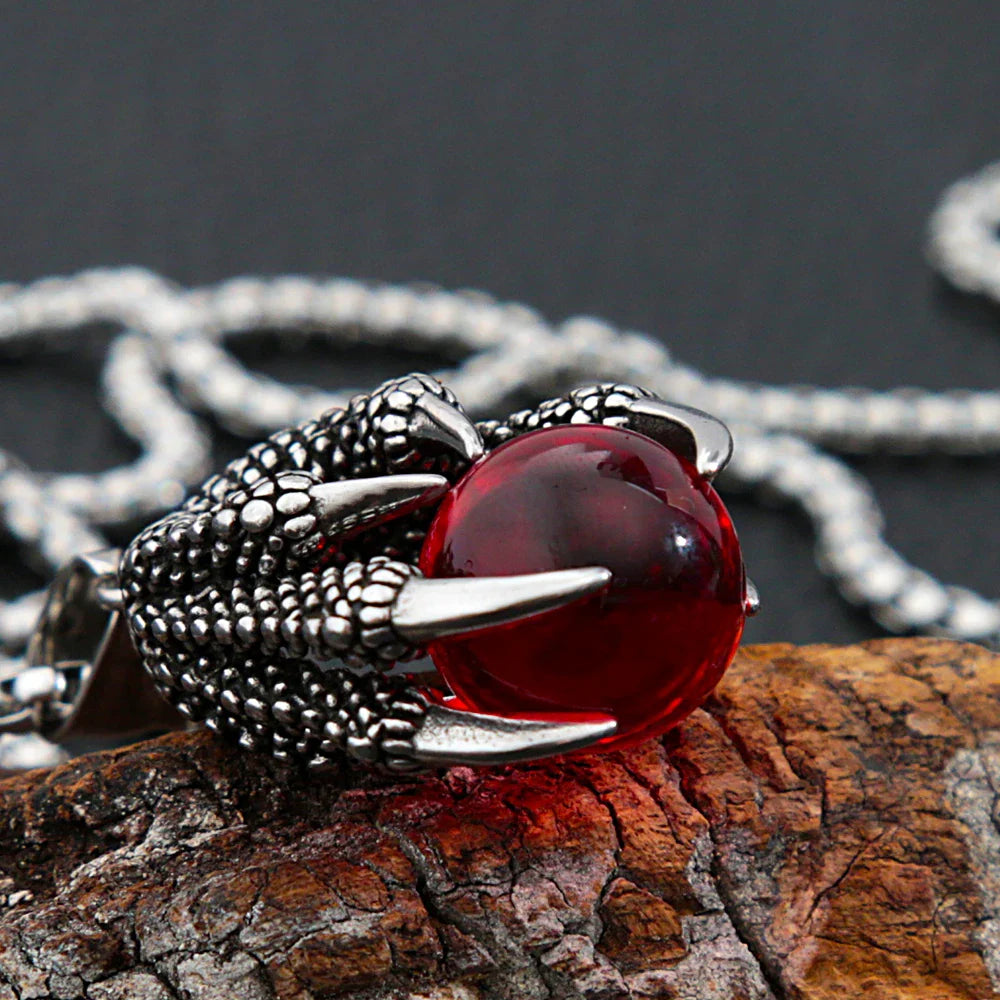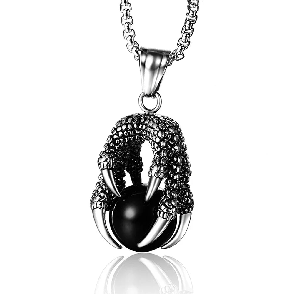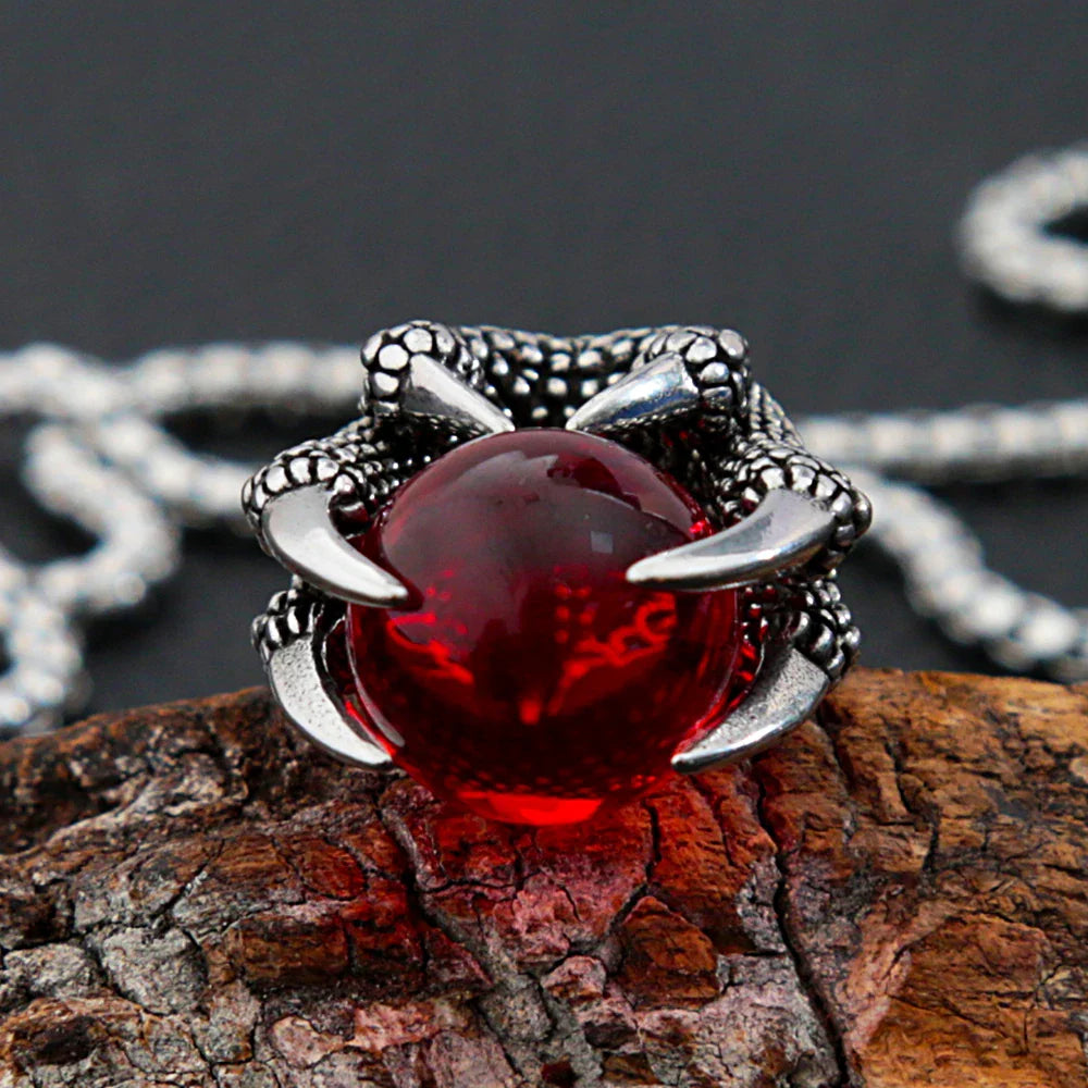 Embrace bold gothic style with this Stainless Steel Dragon Claw Pendant Necklace — featuring striking blue, white, black, and red glass beads for a powerful, retro-inspired accessory.