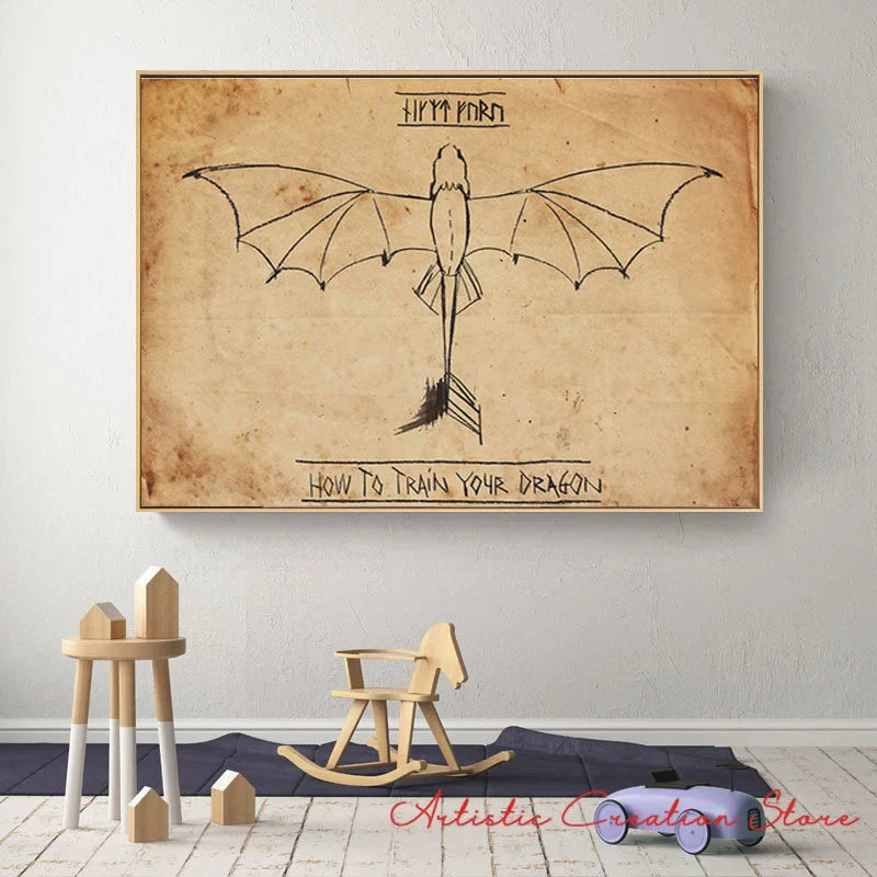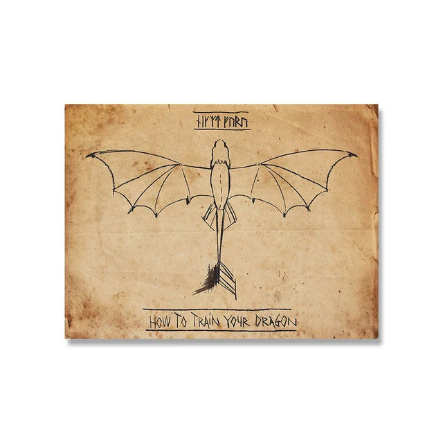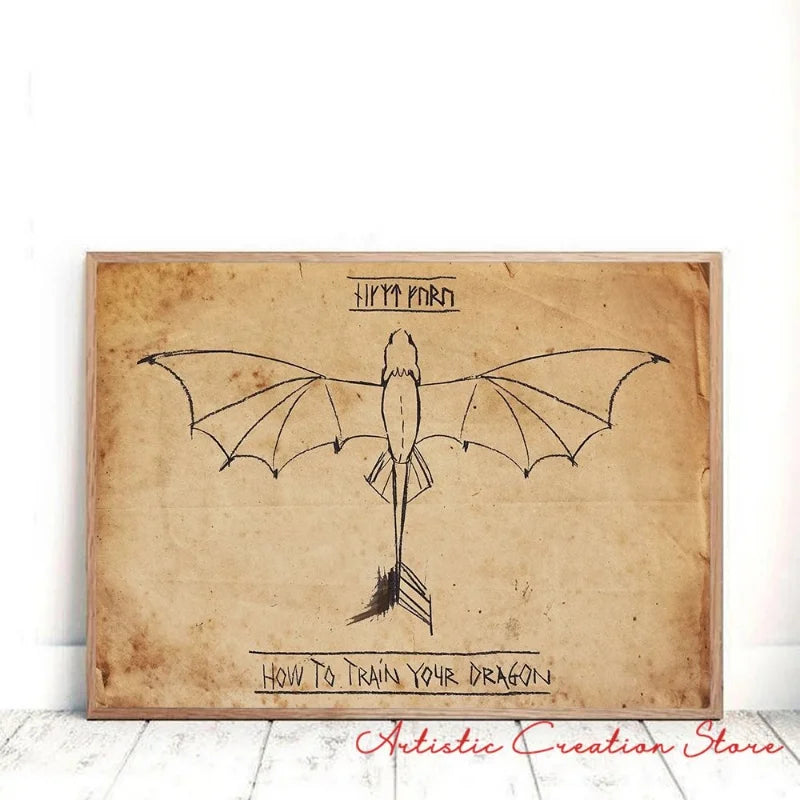 How to Train Your Dragon Posters – Vintage Minimalist Line Canvas Wall Art