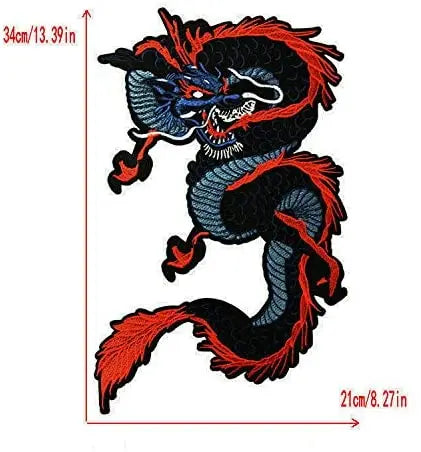 Make a bold statement with this 13.4β large dragon embroidered applique patchβperfect for customizing jeans, jackets, bags, and more with easy iron-on or sew-on application.