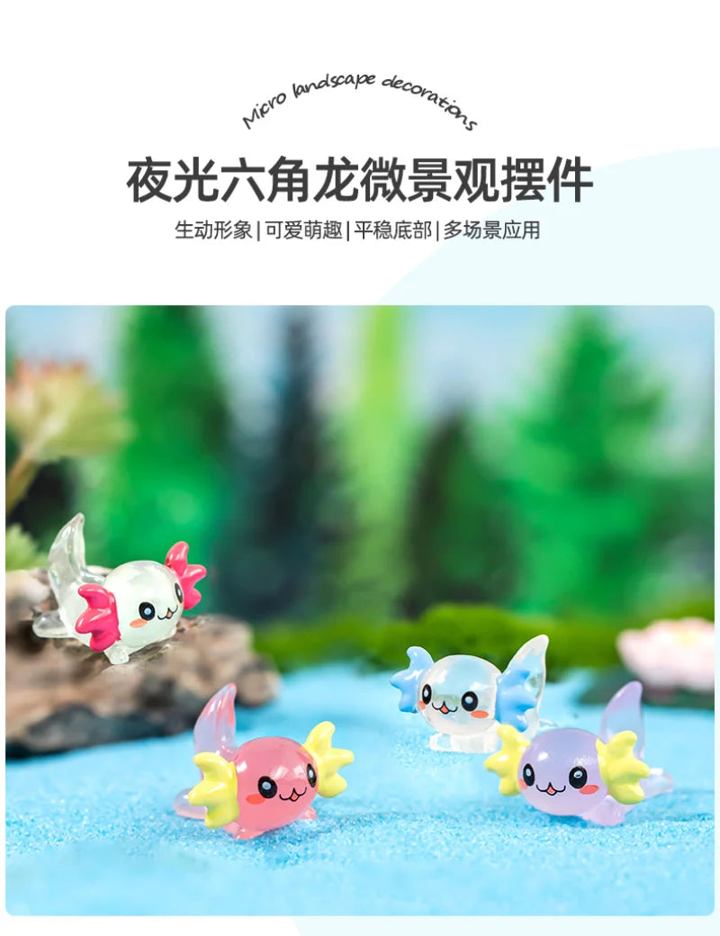 Luminous Hexagonal Dragon Ornament – Mini Cartoon Figurine for Micro Landscape & Decorative Displays