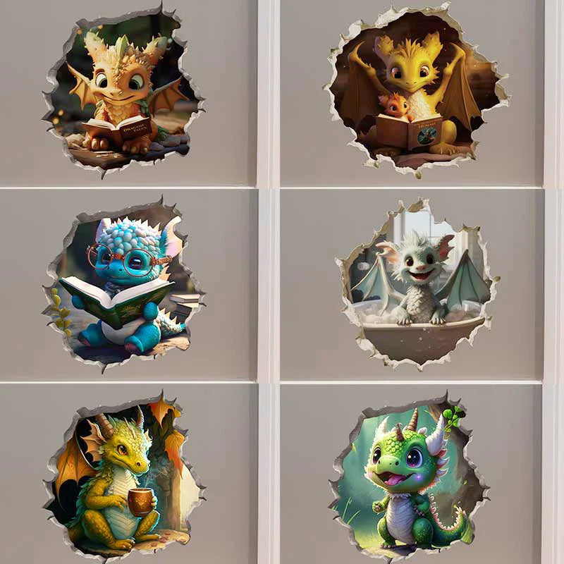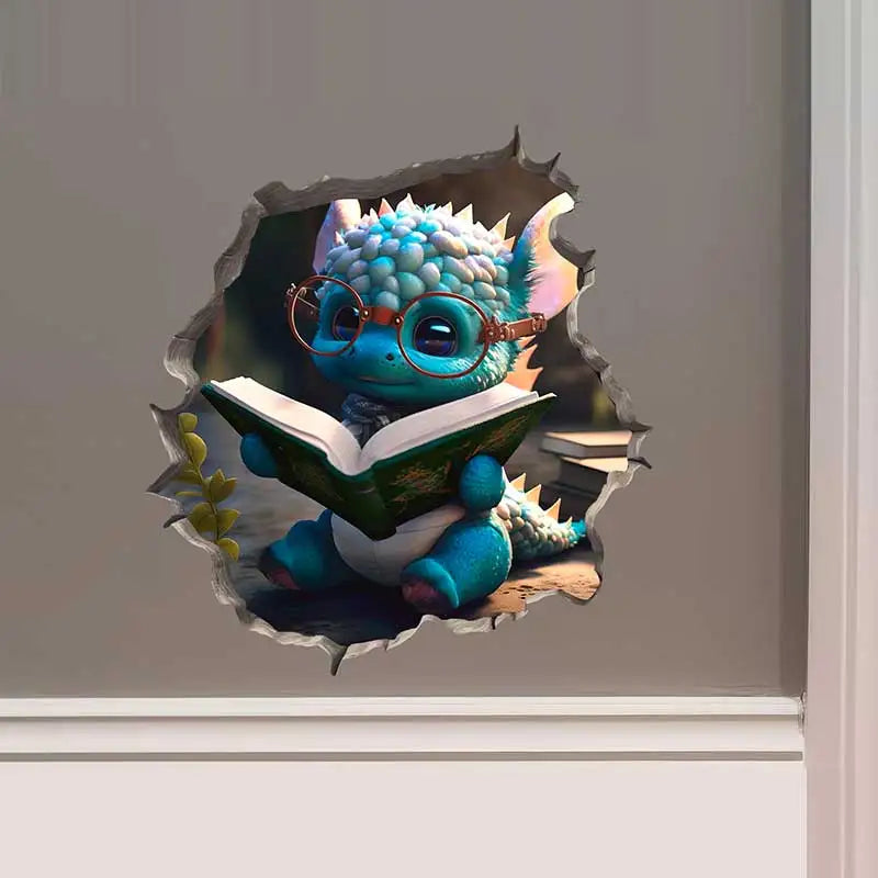 Add a magical touch to your space with the M454 Dragon Parent and Child Wall Decal — a charming 3D-style sticker featuring dragons reading together inside a tiny mouse hole. Whimsical, cozy, and perfect for fantasy lovers!