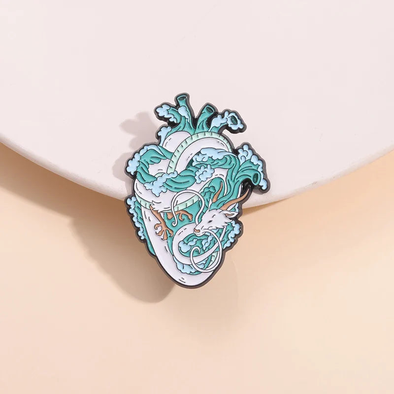 🐉 Marine Life White Dragon Enamel Pins – Custom Heart Organ Brooches & Lapel Badges 🐚
