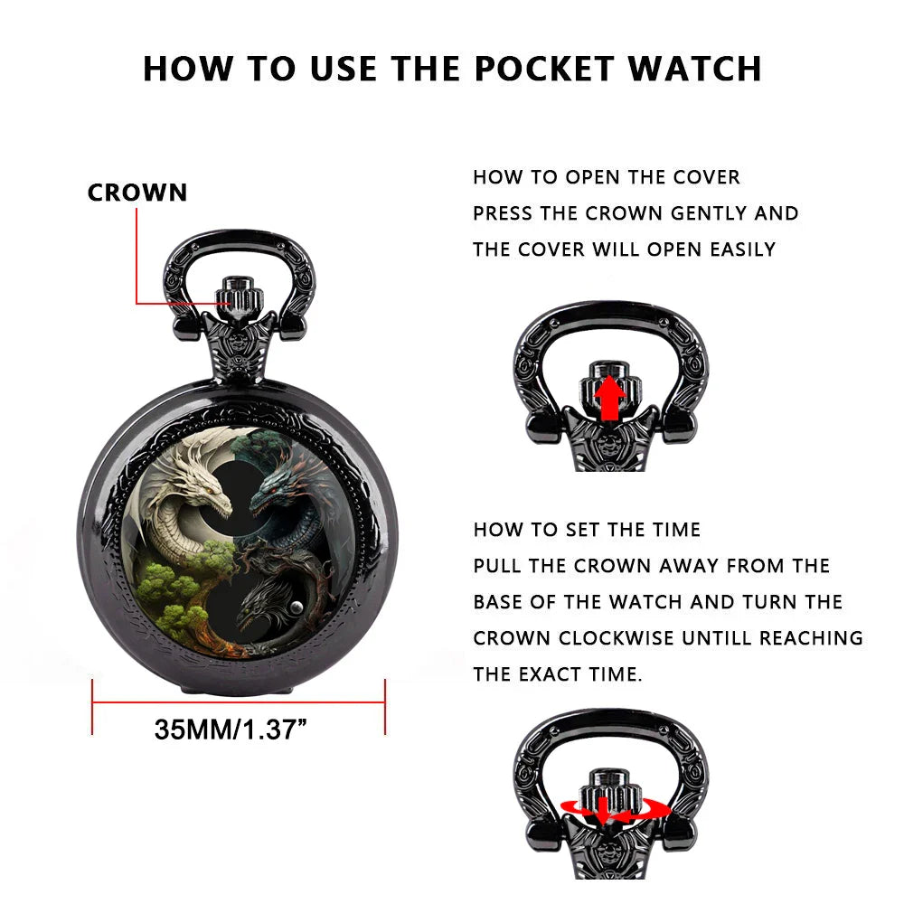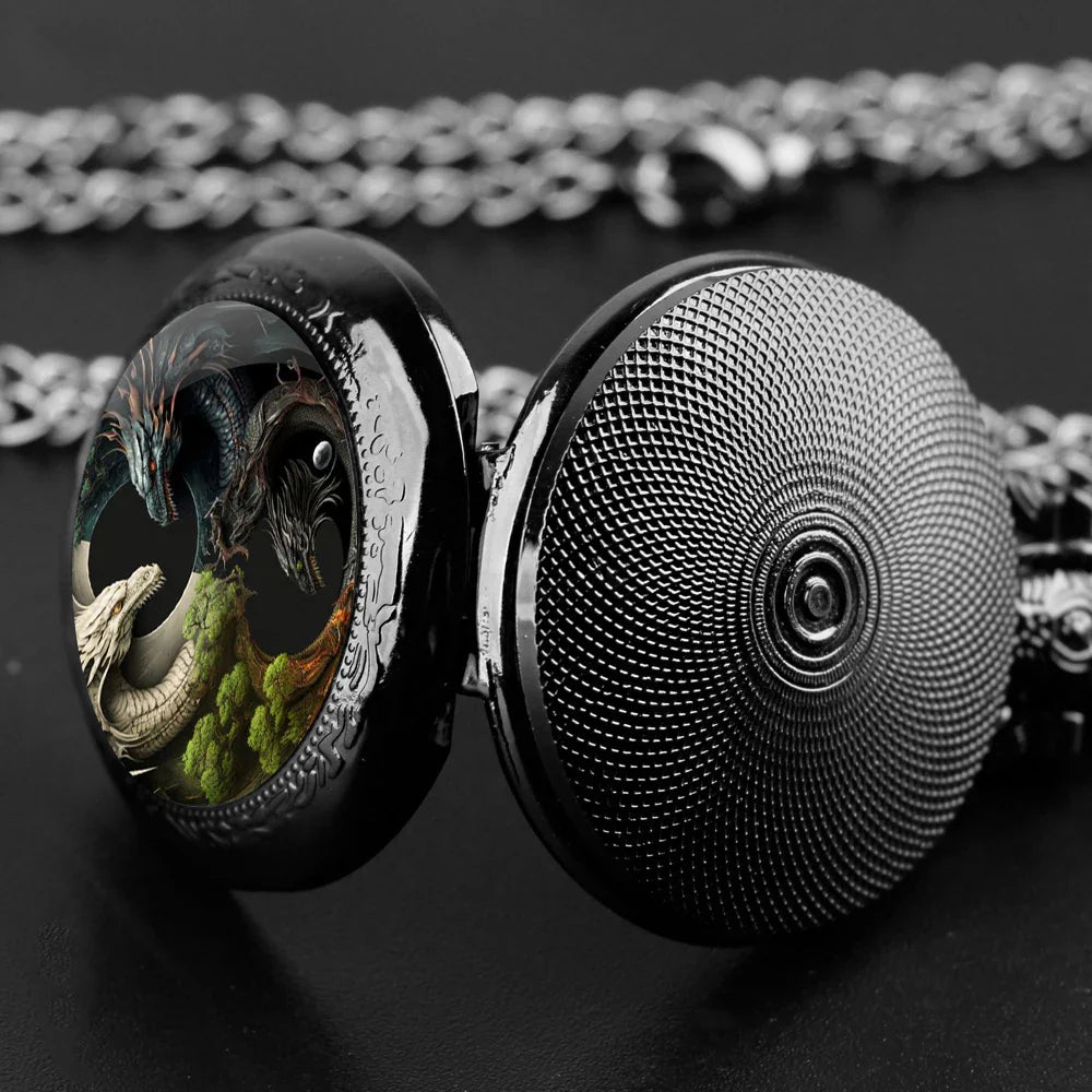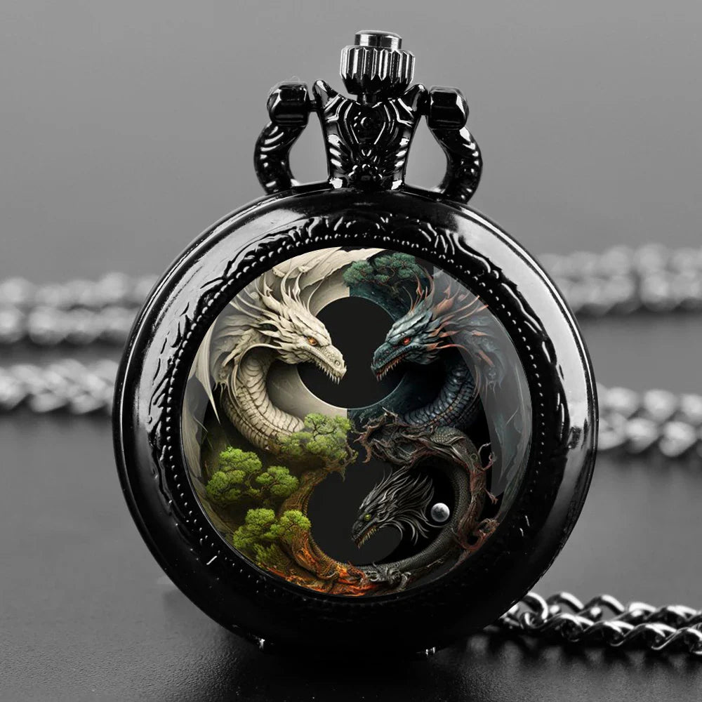 Embrace mystique and tradition — get your Dragon Glass Dome Pocket Watch Necklace today!
