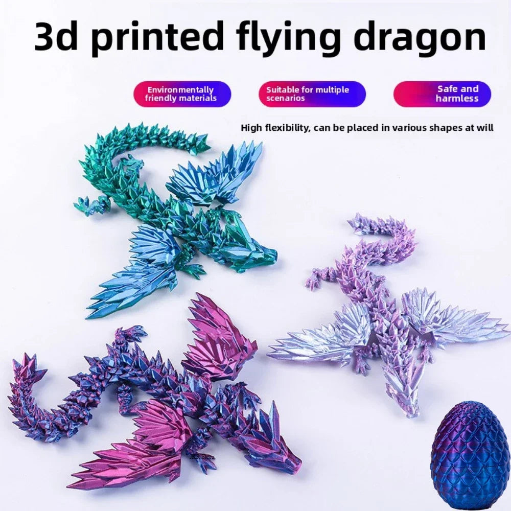 Add a touch of fantasy to your space with this New 3D Printed Dragon Ornament! Designed with intricate detail and movable parts, this dragon action figure doubles as a creative home or office decoration and a perfect holiday gift.