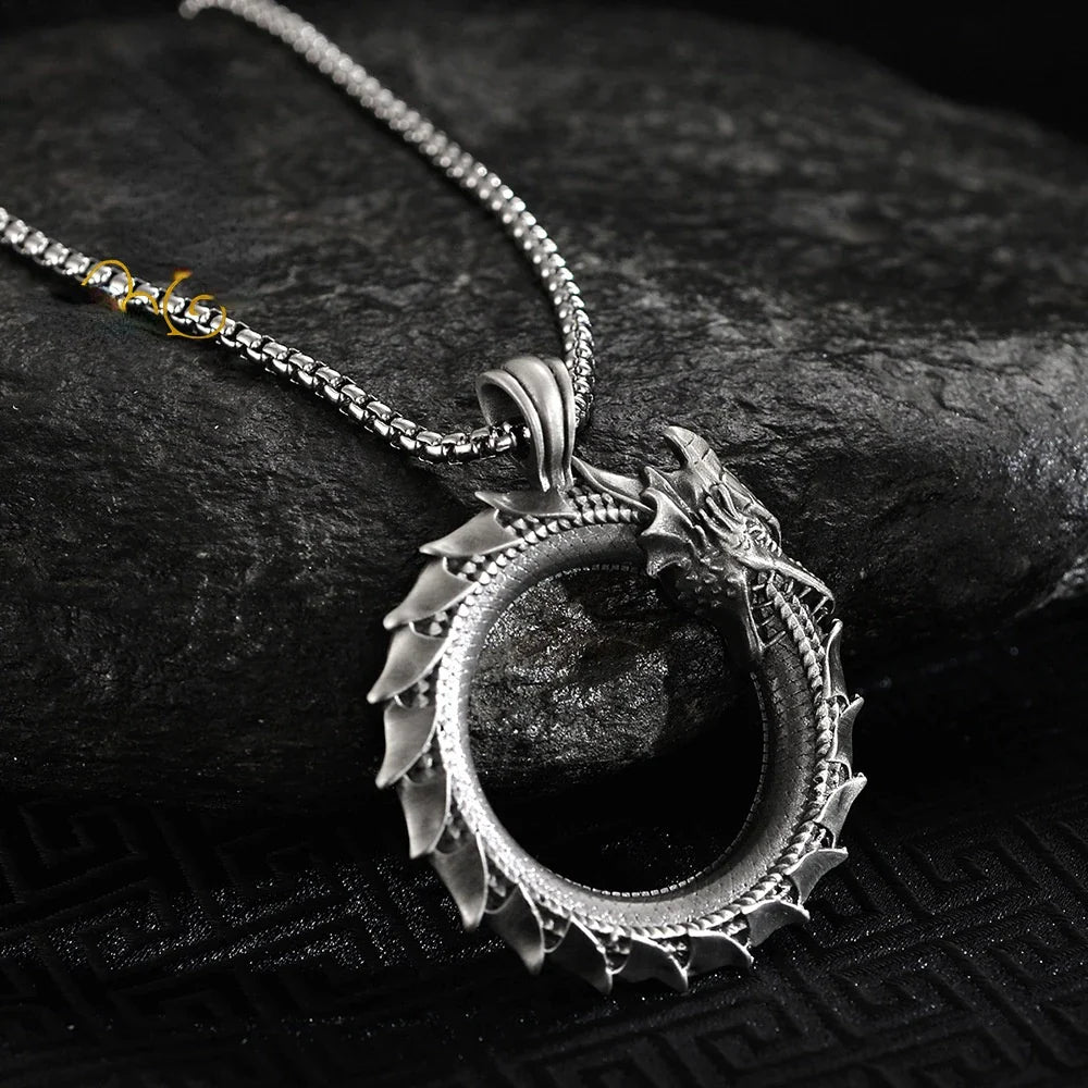 Simple Retro Circle Dragon Pendant Necklace – Motorcycle Punk Articulated Snake Jewelry for Men & Women