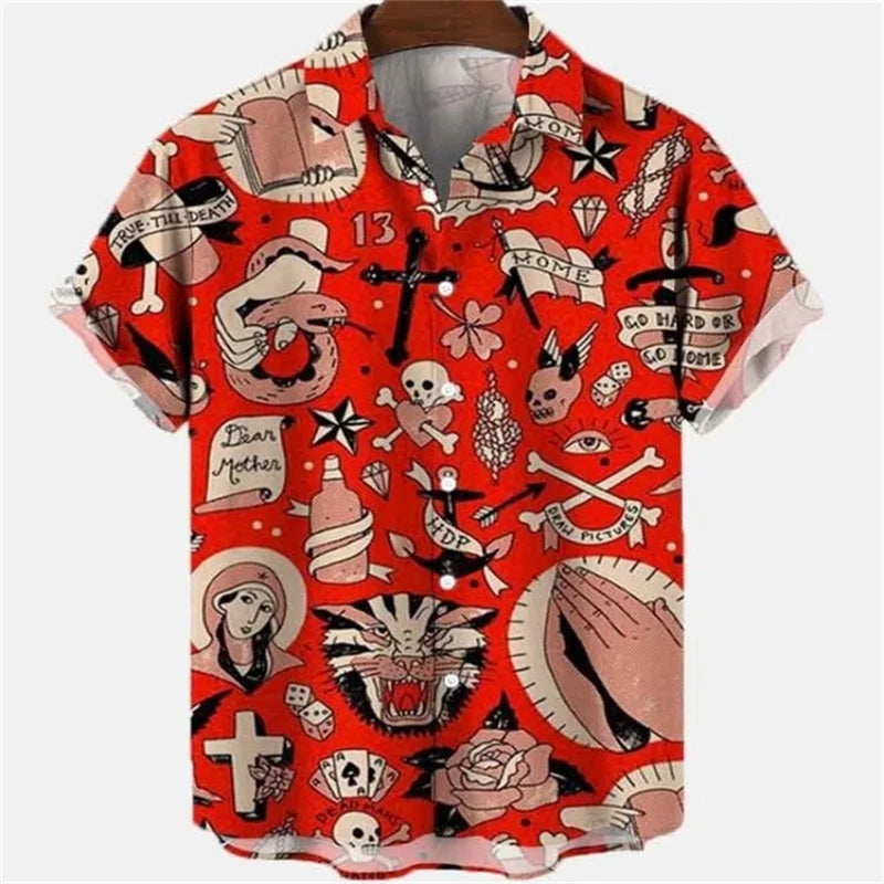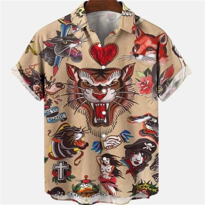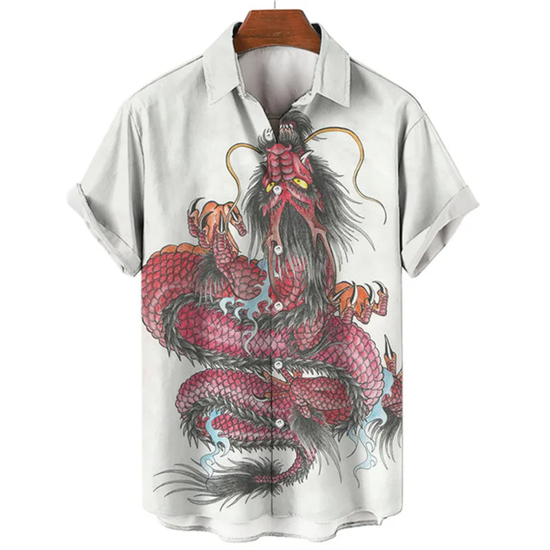 🐉 Summer Men’s Dragon Pattern Element Shirt – Social Casual Vintage Hawaiian Shirt 🏝️👕
